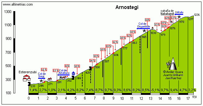 Decidimos no perder mucho más tiempo y nos disponemos a subir Bagargi. Es muy fácil describir este puerto, quizás porque lo teníamos marcado como uno de los más duros de toda la ruta, parece que lo conocemos de memoria y quizás, por eso, no lo vemos tan complicado: 14km con 4km al 10%, 12,7%, 11,4% y 11,9%. El resto de kilómetros rondan el 8% con rampas desde el 14% al 16%.