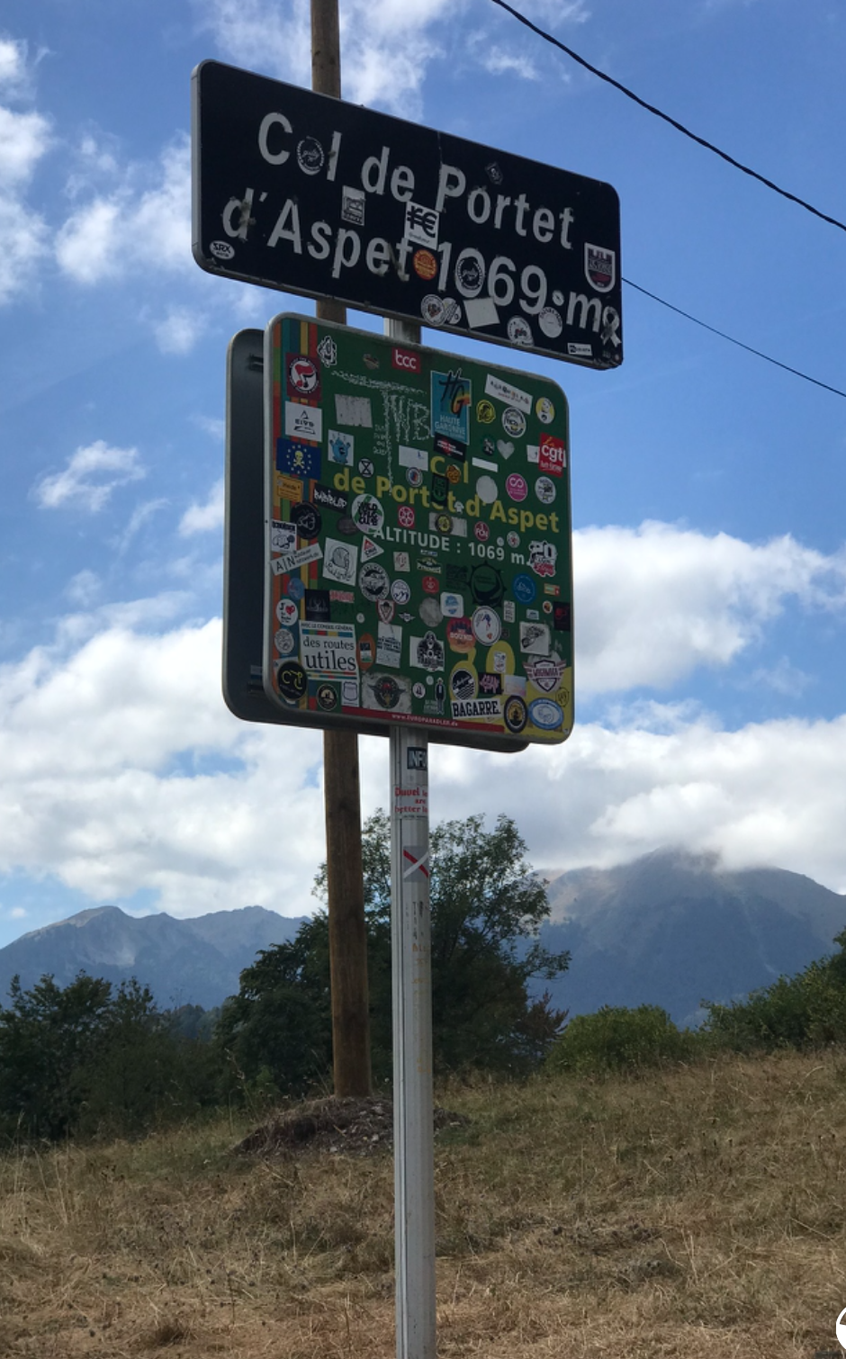 Una hora después y algunos puestos perdidos iniciamos la subida al Col de Portech, de unos 8km al 8% de media, casi nada. En mitad de puerto doy la bienvenida a mis tradicionales problemas estomacales. En este caso, una pequeña acidez sin importancia que me acompañará durante todo el día. Una vez arriba, ya estamos pensando en subir Portet d´Aspet, un puerto exigente pero muy bonito, clásico de las rutas francesas. Creo que la parada al pinchazo que en un principio veíamos como una pérdida de tiempo, en realidad nos está viniendo bien. Parece que vamos más alegres, con menos fatiga, y eso que ya estamos acercándonos al km. 100 de la etapa de hoy..