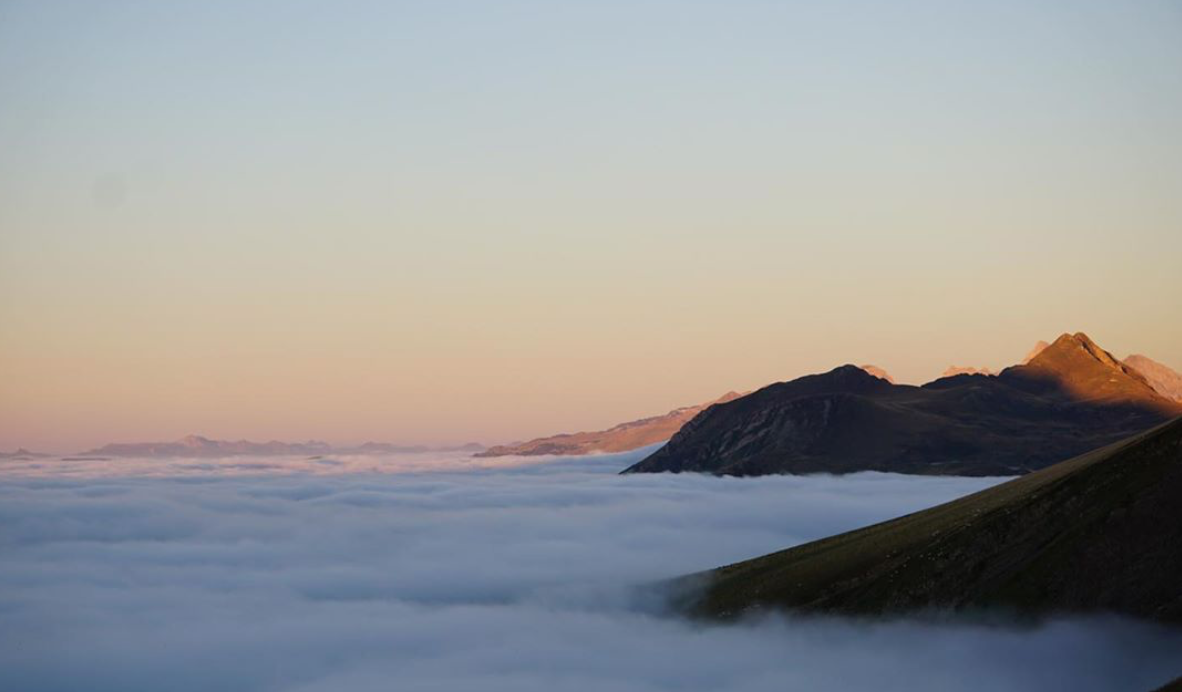 ¡Menuda subida! Llego arriba con Chema y un poquito después Borja. Nos abrigamos bien porque tenemos que descender y atravesar las nubes que antes subimos. Sin viento, y con unas vistas espectaculares, disfrutamos de la bajada hasta Isaba. Estoy realmente contento. Sólo espero que Chema pueda aguantar mañana, porque no me imagino después de tanto esfuerzo, no llegar a meta juntos.