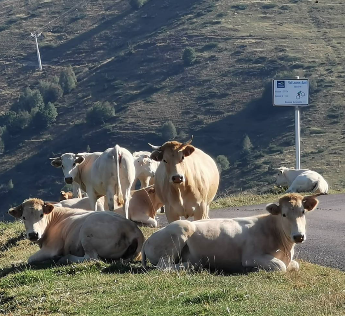 Hoy toca hacer la digestión subiendo Pradel, otro puerto bonito, más estrecho, con muchas vacas y vegetación en cada orilla de la carretera. Estamos ascendiendo relativamente bien, aunque psicológicamente no encuentro de donde tirar. Necesito que se termine el día, pero aun quedan unos 80km hasta llegar a Tarascón (km. 290), pueblo donde queremos parar a cenar y dormir.