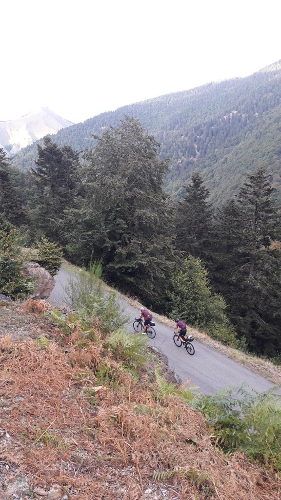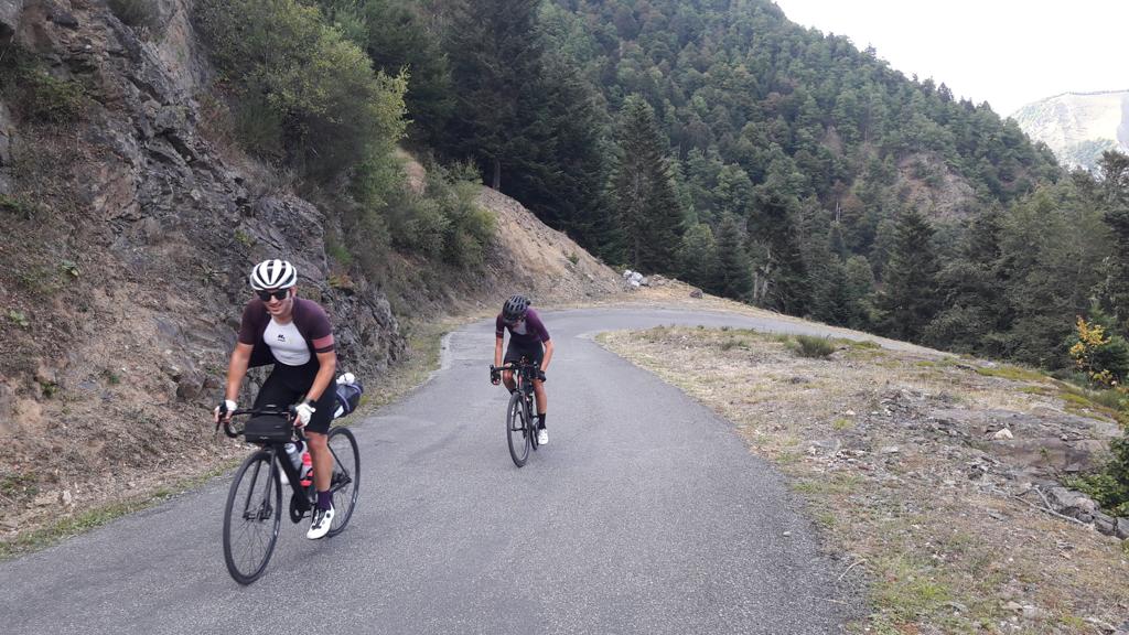 Nos levantamos, aseamos, vestimos y empaquetamos. Salimos del restaurante-hotel sobre las 5:30 de la mañana. La rapidez en preparar las mochilas y empezar a rodar no ha sido nuestro fuerte durante Transpyrenees. Curiosamente, cada día tardábamos más, con lo feliz que está uno durmiendo y lo que cuesta empezar a rodar antes de que salga el sol. Nos ponemos en marcha bajando la parte que nos quedó ayer del puerto y en menos de 15 minutos ya estamos subiendo Val Louron. Hoy desayunamos unos 8km con una media por encima del 8%. Un puerto que tiene lo mismo de bonito que duro. Empiezo a notarme bastante bien hasta que en el km 2 de ascenso, la rodilla de Chema no da tregua. Parecía que con el descanso de anoche había mejorado pero en cuanto la pendiente ha subido, el dolor aparece. Chema lo está pasando mal. En los puertos con grandes rampas suele ir mejor que yo y esta vez es al revés. Kilómetro a kilómetro, curva a curva, logramos coronar el primer puerto del día, pero, ni por asomo, era como teníamos planeado.